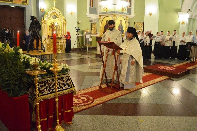 Богослужебные песнопения исполнил Митрополичий хор Покровского кафедрального собора под управлением регента Елены Левада.