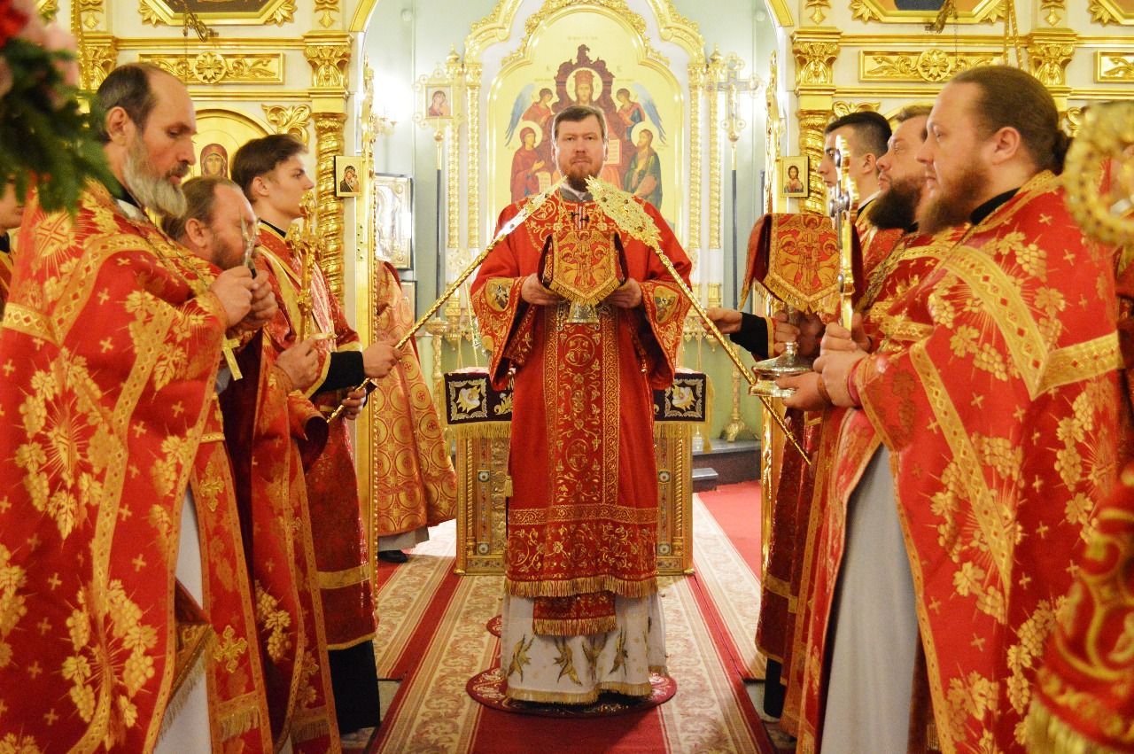 Его Высокопреосвященству сослужили ключарь собора иеромонах Иоанн (Костин), игумен Антоний (Каменчук), игумен Тихон (Иршенко), протоиерей Игорь Шевчук.