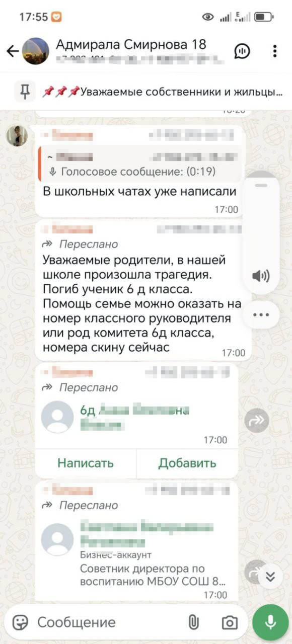 Вместе с тем, в социальных сетях распространяются недостоверные сведения о гибели ребёнка. Пользователи публикуют скриншоты сообщений из школьных чатов, где ведутся сборы денежных средств для родственников якобы умершего школьника.