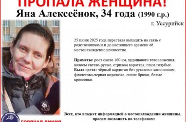 В Приморье объявлен розыск 34-летней Яны Алексеёнок, жительницы Уссурийска. Девушка пропала без вести вечером 25 июня 2025 года и до сих пор не выходит на связь с родственниками, сообщает PimaMedia со ссылкой на волонтерскую группу ПРОО «ПримПоиск».