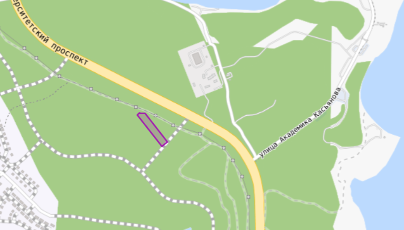 Участок расположен недалеко от остановки «ТЭЦ Океанариум» и поворота с Университетского проспекта на проспект Академика Касьянова.