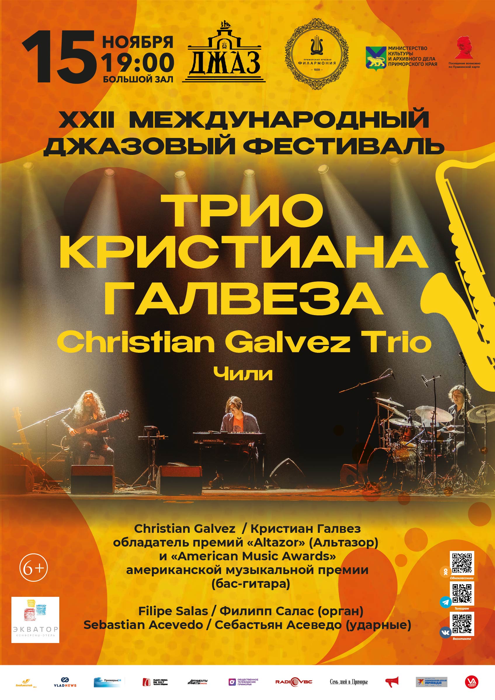 Концерт коллектива Chris Gálvez and Organ Trio состоится во Владивостоке 15 ноября в рамках XXII Международного джазового фестиваля.