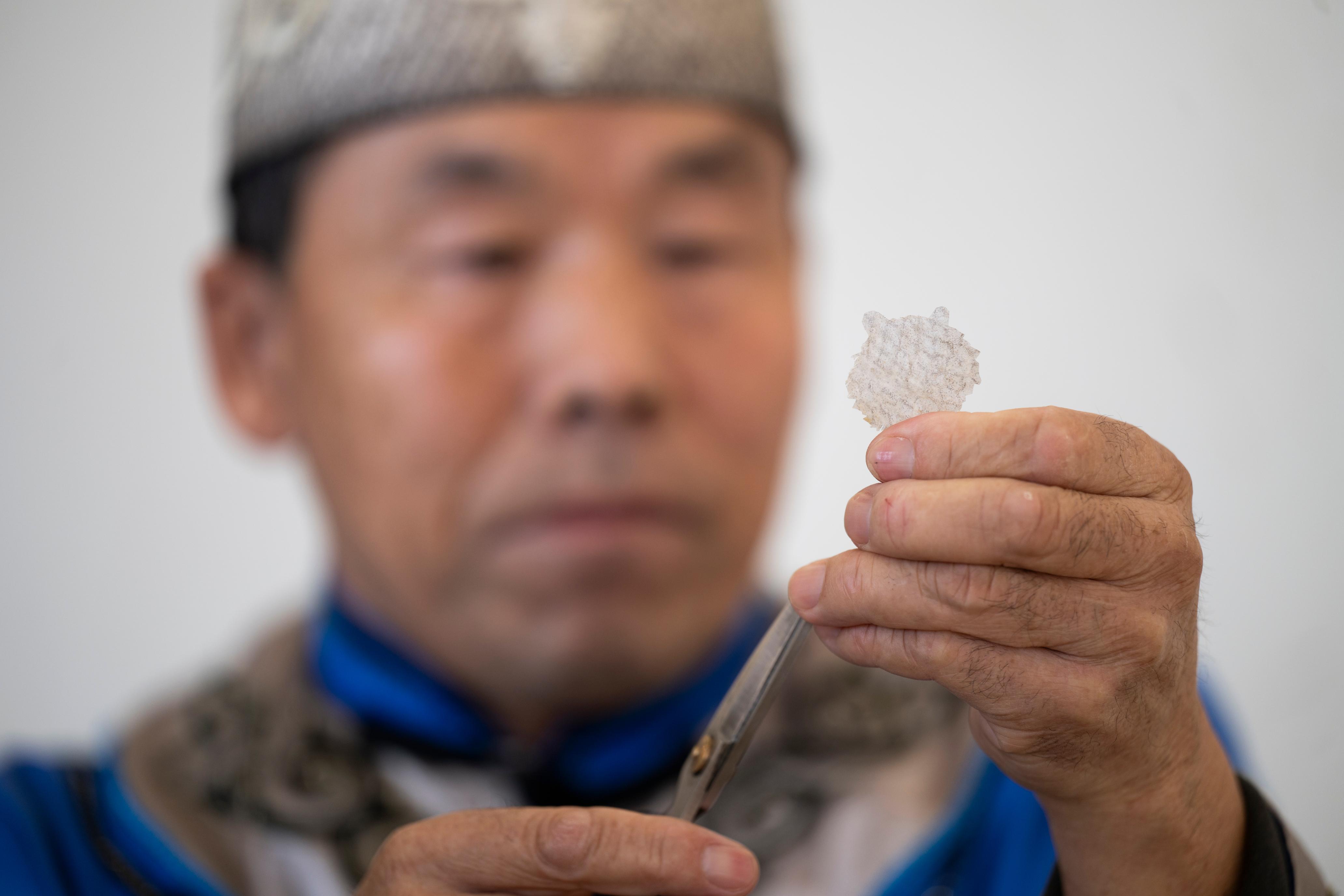 Его зовут Ю Чуан, он секретарь партийной ячейки деревни Юйецунь в посёлке Цзецзинькоу народности хэчжэ города Тунцзян провинции Хэйлунцзян, является коренным представителем народа хэчжэ.