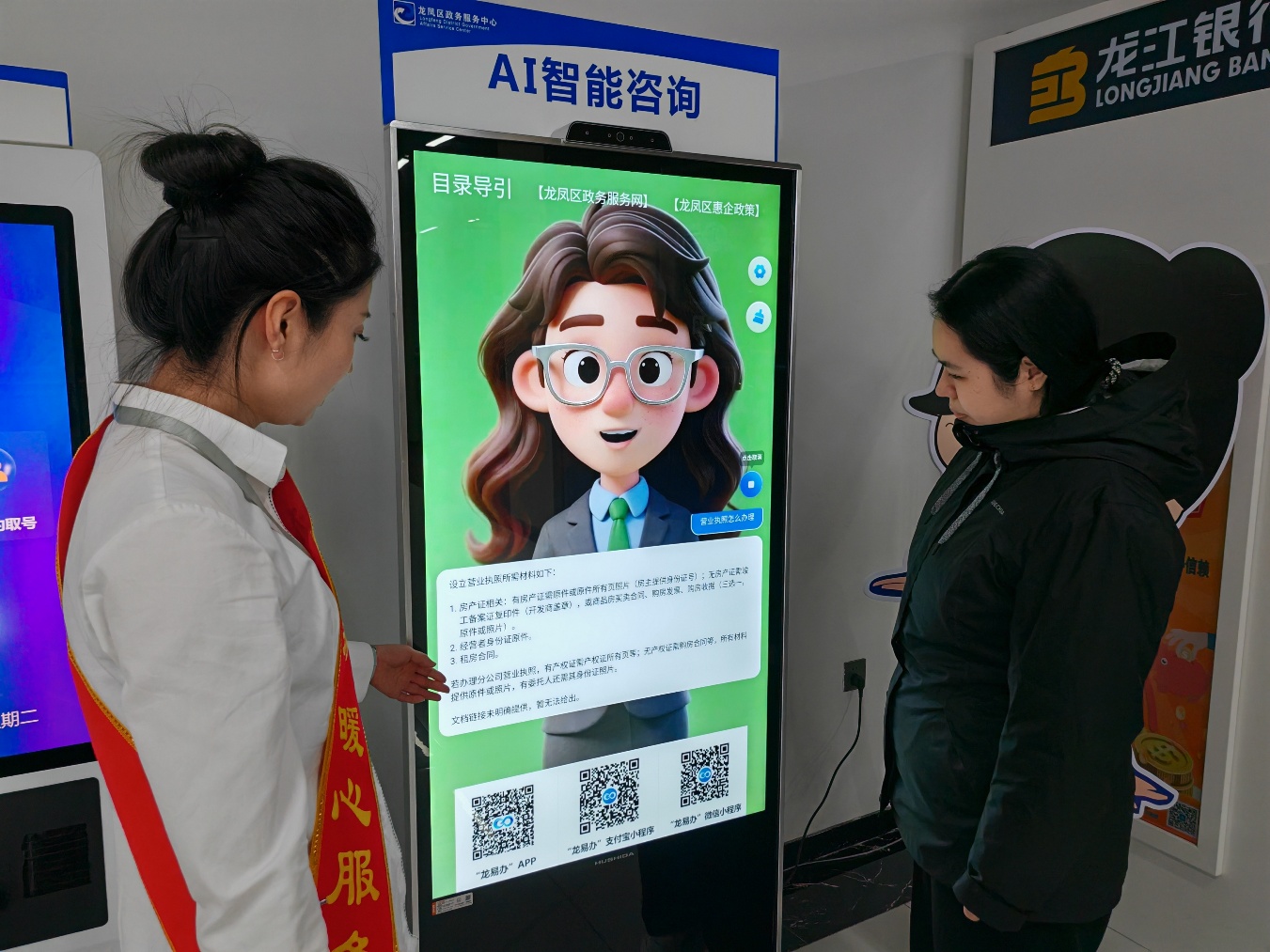 «Не ожидала, что, просто задав вопрос, можно будет полностью понять процедуру оформления соцстраха, да ещё получить пошаговое руководство. Очень удобно». В правительственном сервисном центре района Лунфэн города Дацин гражданка Юй Шуанлин тихо задала вопрос умному терминалу, и цифровой персонаж-мультяшка «открыл рот» и ответил. Этот новейший ИИ-цифровой человек объединяет 473 часто запрашиваемых административных услуги, он не только точно распознаёт разговорные, бытовые формулировки вопросов, но и эффективно отвечает на профессиональные запросы по госуслугам, позволяя населению пользоваться услугами как у персонального консультанта и реально воплощая принцип «пусть данные бегают больше, а люди — меньше».