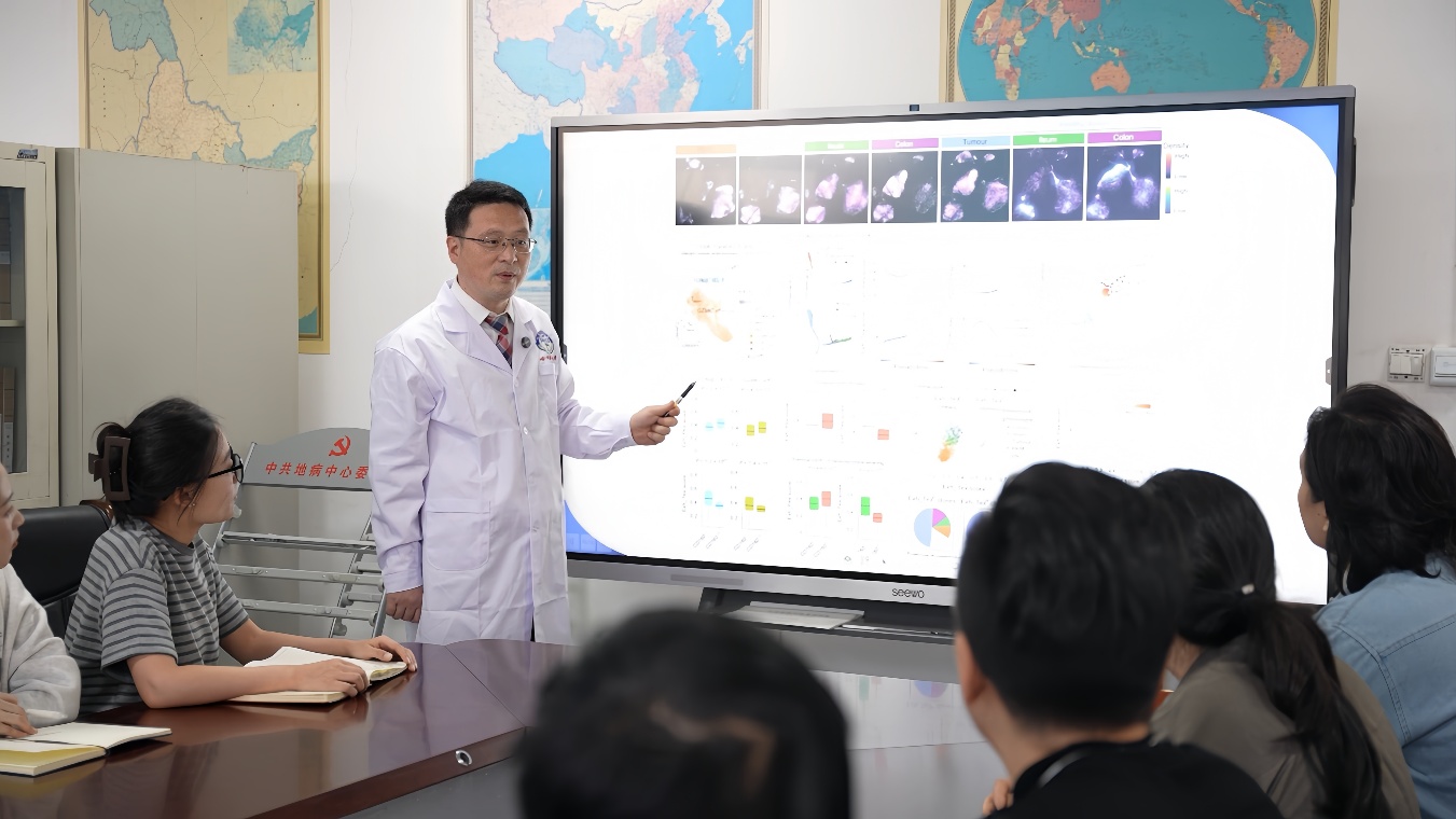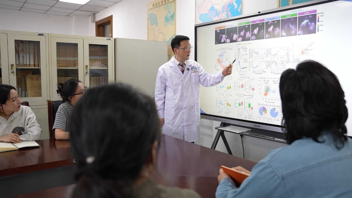Профессор Хао Дапэн объясняет данные исследования единичных клеток при колоректальном раке.
