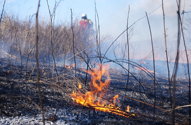Масштабный природный пожар обнаружили утром 24 февраля в Приморье