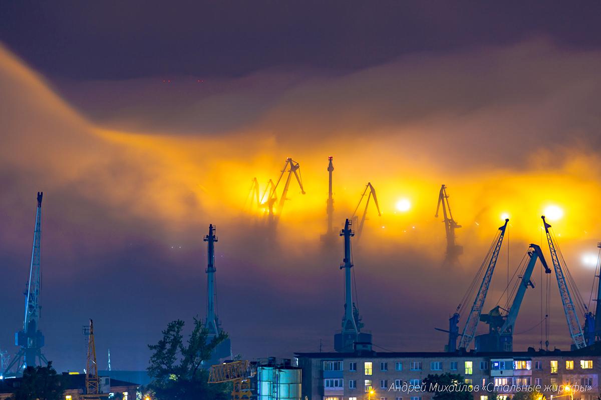 Огни фонарей, пробивавшиеся сквозь туман, создавали иллюзию жаркого африканского солнца. Жёлтый свет, длинные «шеи» кранов, их грациозный наклон… Боже мой, да это же жирафы! Стадо стальных, могучих, но таких изящных жирафов, пришедших на водопой к морю — в этом молочном мареве.